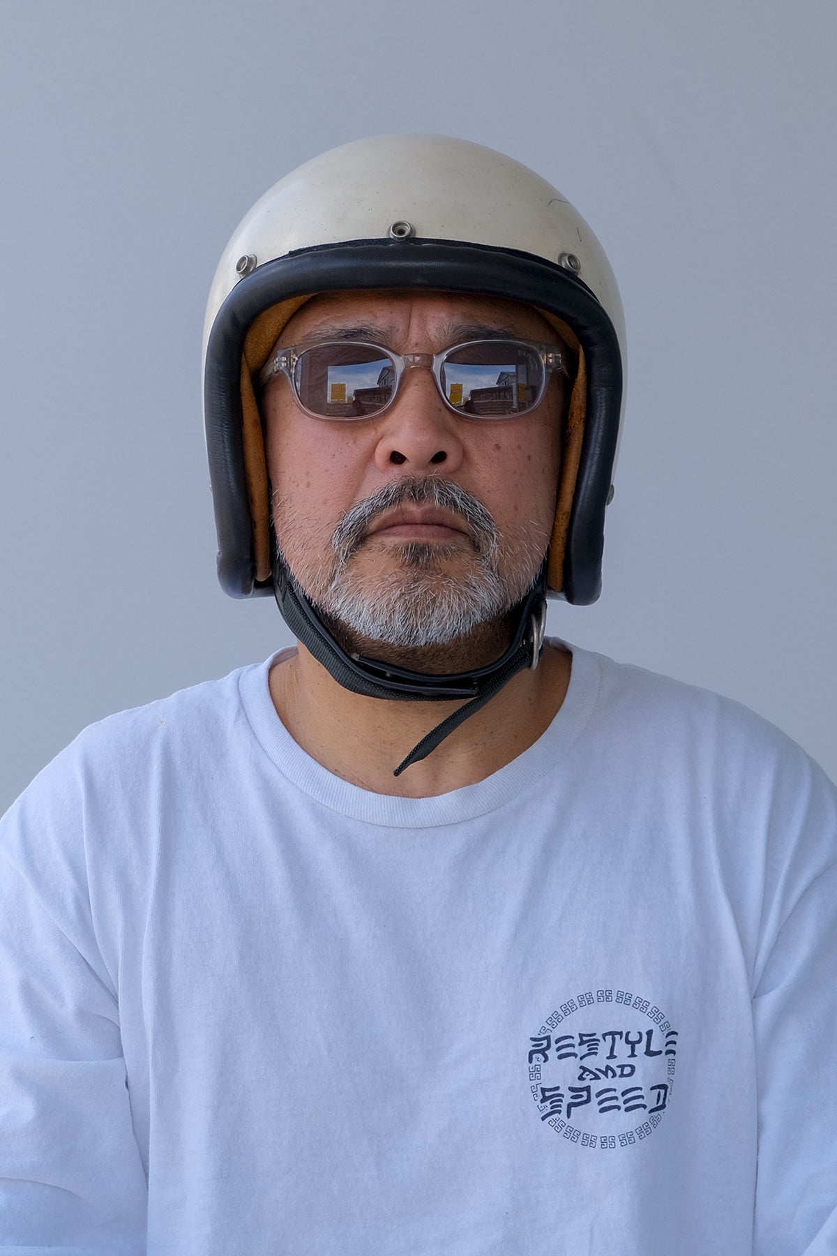 UNCROWDファーストモデル。B級バイクムービーから出て来たままのシンプルながら完成度の高いバランス取れたモデルです。風の侵入を考えた鼻盛り部分や厚いフレームワークが見た目とは裏腹にバイカーシェードとしての機能を最大限に生かされたモデルです。
